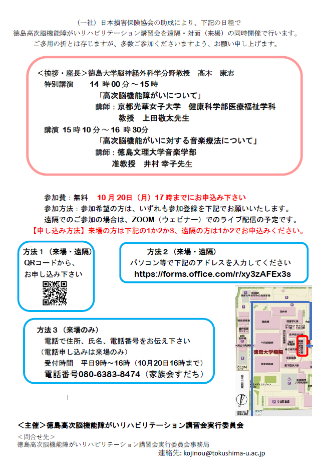 共催 | 徳島大学病院高次脳機能障害支援センター |